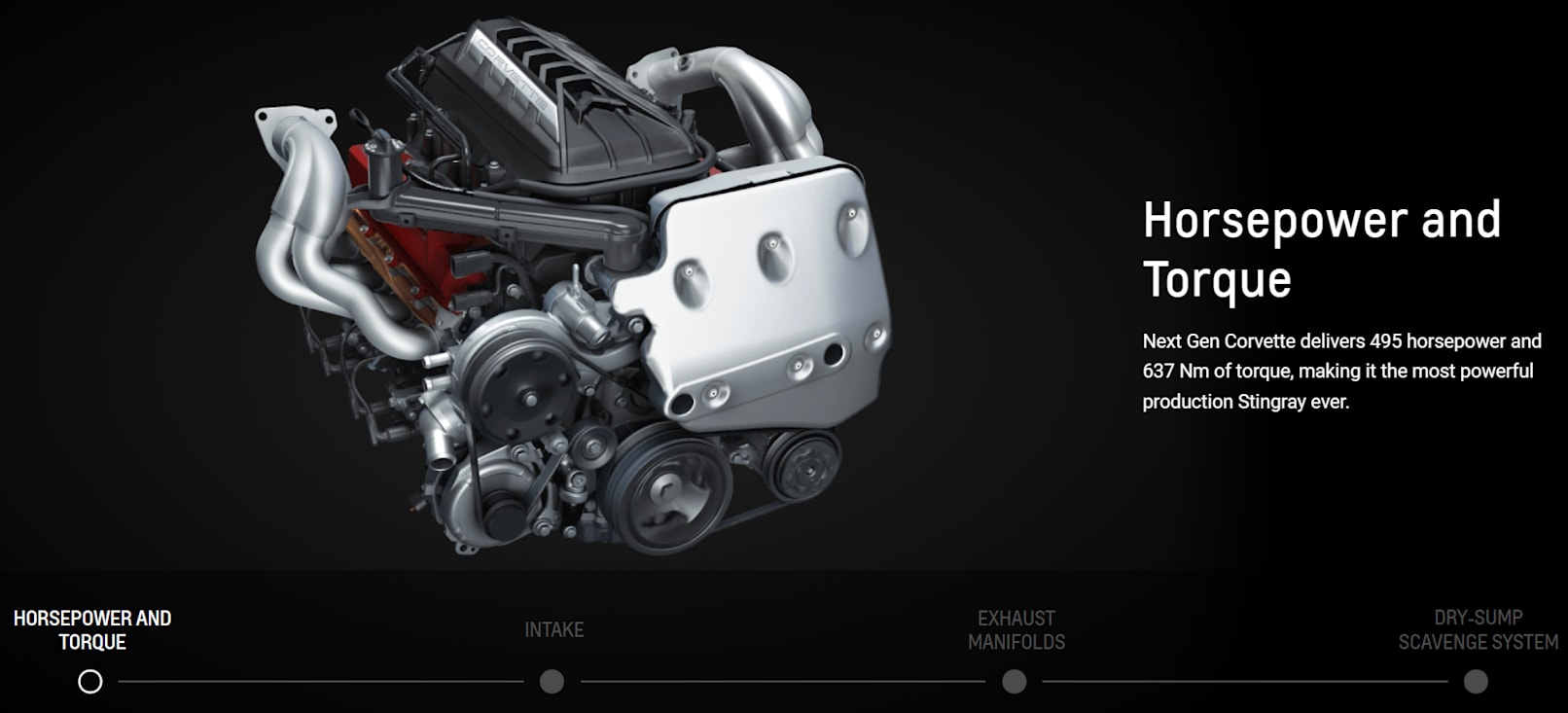 Corvette delivers 495 horsepower1 and 637 Nm of torque,1 making it the most powerful production Stingray ever.